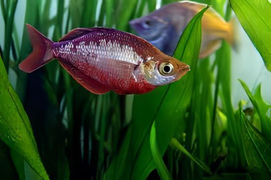 This is a peaceful shoaling species ideally suited to the planted community aquarium. They should be kept in groups of 6 or more individuals and because of their active nature and large adult size, the aquarium should be at least 4ft long to allow them a good amount of swimming space. As with many other Rainbowfish species, the small juveniles can look comparatively drab to the absolutely stunning adult fish, and so are all too often overlooked in the shops. However, once settled into the security of the planted aquarium, these young specimens will soon begin to colour up, revealing their true adult beauty. The males in particular will develop a positively dazzling appearance, with the dominant male displaying the brightest colours of all. Intensity of males can vary, with higher temperatures often leading to a deeper burgundy hue.