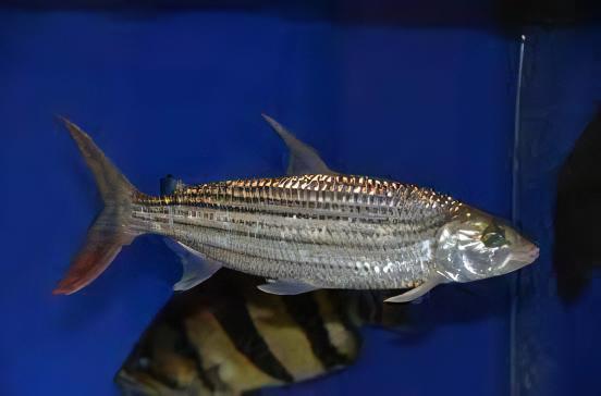 Overview: The African Forskahlii Tiger Fish is a striking predator known for its sleek, silver body adorned with bold black stripes and ferocious, toothy grin. Its predatory prowess and stunning appearance make it a thrilling addition to any advanced aquarium.