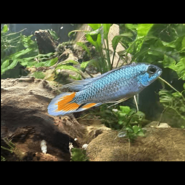 The Apistogramma Agassizi Blue Flame is a vibrant and striking dwarf cichlid known for its brilliant blue coloration and long, flowing fins. Native to the slow-moving rivers of South America, this species adds a splash of color and personality to any freshwater aquarium.
