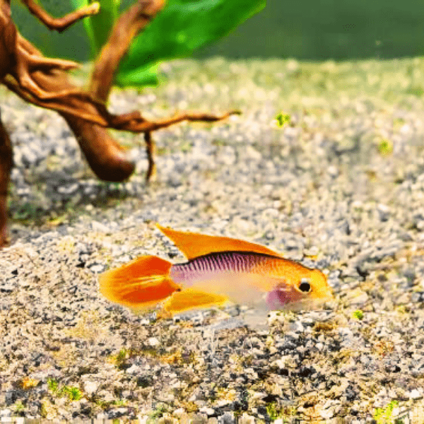 Overview: The Apistogramma Agassizi Fire Gold is a stunning dwarf cichlid, admired for its vibrant golden hues and flowing fins. It is a popular choice for aquarists seeking a colorful, active, and relatively small fish for their aquarium.
