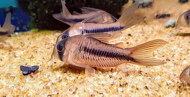 Sinking catfish pellets, frozen foods such as bloodworm, white mosquito larvae and vitamin-enriched brineshrimp.