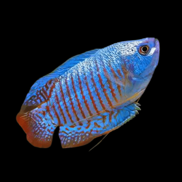 Overview: With their striking blue and red hues, Blue Dwarf Gouramis captivate enthusiasts seeking a visually stunning centerpiece for their tanks. They possess an elongated body adorned with iridescent scales, exuding elegance in any aquatic setting.