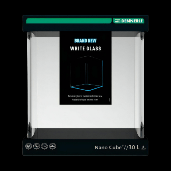 Dennerle Nano White Glass Aquariums come with a cover glass, and base protection foam pad.