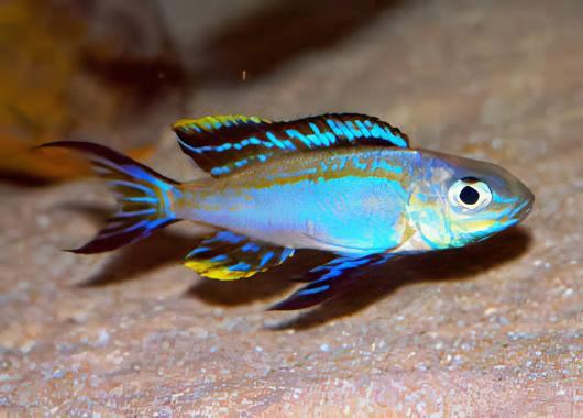Origin: Native to the rocky shorelines of Lake Tanganyika in East Africa, the Featherfin Cichlid thrives in clear, oxygen-rich waters. Its natural habitat is characterized by rocky substrates, where males establish territories to attract females.