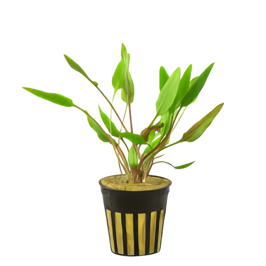 A hardy and easy-care aquarium plant, Five Potted Plants Cryptocoryne Lutea Plant Cryptocoryne Lutea is supplied pre-attached to natural driftwood for instant placement. Its lush green leaves create a natural look while providing excellent shelter for fish and shrimp. Ideal for low-maintenance and low-tech aquariums.
