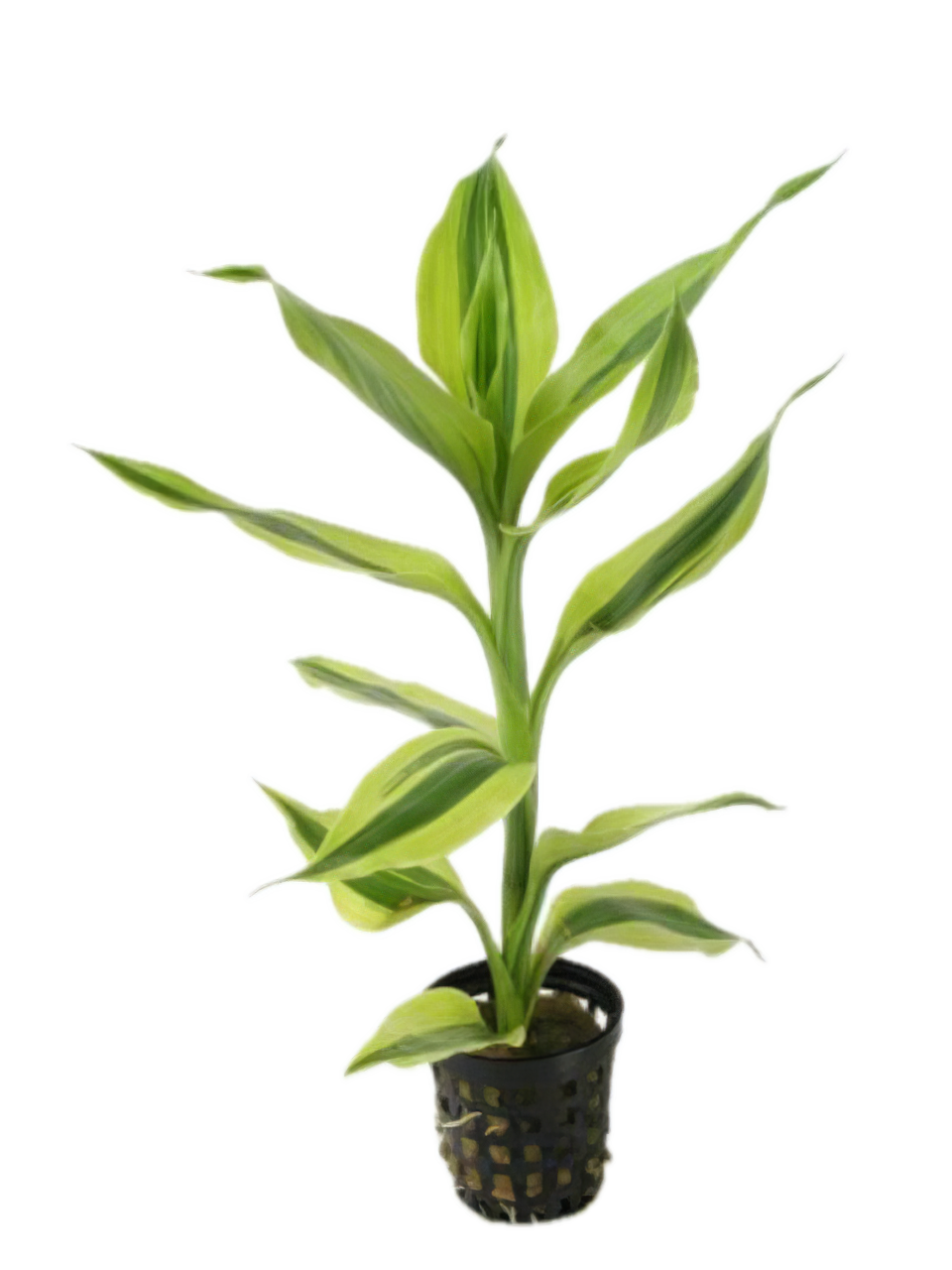 Yellow Variegated Dracaena is a bold ornamental plant with long, arching leaves featuring vibrant green and yellow variegation. Supplied in pots, it offers easy placement and brings height and tropical contrast to aquascapes, paludariums, or terrariums.