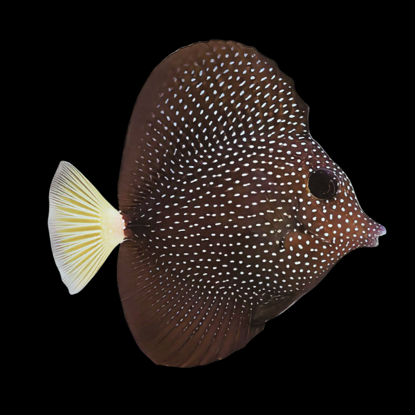 The Gem Tang is one of the most stunning and exclusive surgeonfish in the hobby. Its velvety black body, speckled with dazzling white “gemstone-like” spots and highlighted by a golden tail, makes it a true centerpiece fish. Highly prized by collectors, the Gem Tang combines rarity with breathtaking beauty.