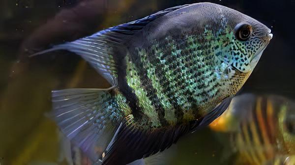 The Green Severum is a peaceful species, suitable for communities of non-aggressive medium-large sized fish. In the wild, the gentle Green Severum can be found in slow-moving waters packed with heavy with vegetation. Therefore the aquarium should include plenty of robust plant species along with numerous rocky caves and bogwood pieces. Green Severums can be kept in groups or pairs, but should a pair choose to spawn in a community setting, they will become much more aggressive towards the other fish. Ideally the tank will be at least 4ft long with lots of visual barriers for the other fish to escape the Green Severums attentions. Male fish can be sexed by the presence of cheek markings lacking in the smaller females. If the male seems to overly harass the female, many aquarists find that adding a couple more females will help to spread the brunt of the aggression. After a time, these fish learn to recognise their owner and often come to the glass to greet them or wait for food. A gold variety of this species is also available.
