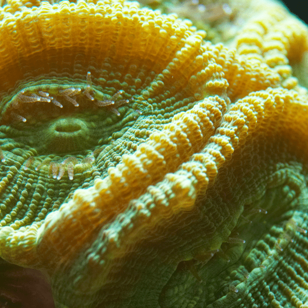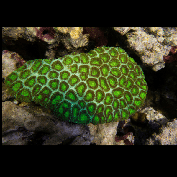 Favites corals, commonly known as Brain Corals, are hard, stony corals with distinctive maze-like patterns on their surface. Their colorful ridges and valleys come in various shades of green, red, yellow, and brown, making them an eye-catching addition to reef tanks. Known for their durability and slow growth, Favites corals add a structural, architectural element to your reef setup.