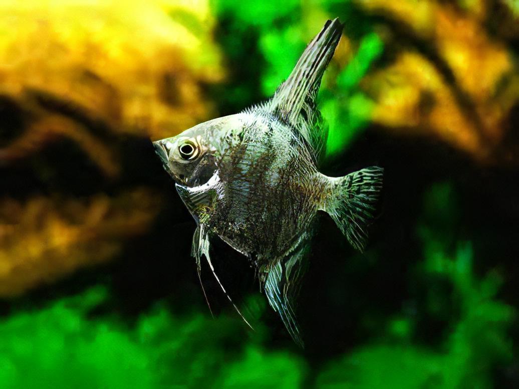 The Angelfish will thrive in a heavily planted aquarium with driftwood and/or rock formations and gentle water flow. It is not overly reclusive, but this fish strongly prefers the cover of plants and, due to its body shape, is not likely to seek refuge in rock caves and similar structures. The Angelfish is generally compatible with other peaceful fish as long as it has plenty of space. Territoriality is typically at its peak during spawning.  Dwarf shrimp and other small, delicate invertebrates should not be kept with the Angelfish, but more durable, larger shrimp and snails could possibly make good tankmates in a large enough aquarium. If spawning is desired, tankmates of other species should be kept to a minimum or avoided altogether unless the aquarium is very spacious.