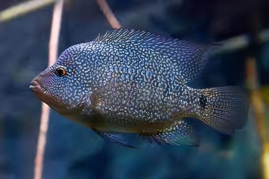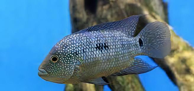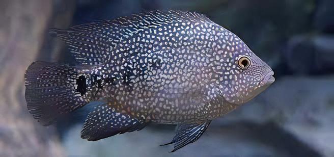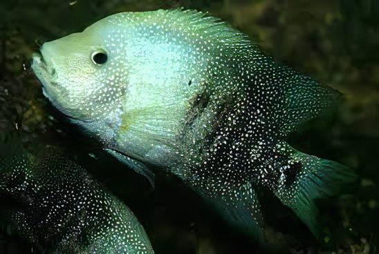 Overview: The Texas Cichlid, scientifically known as Herichthys Cyanoguttatus, is a vibrant and energetic freshwater fish, renowned for its striking appearance. It boasts a stunning array of colors, primarily a dazzling blue with sparkling dots that cover its body and fins, making it a favorite among aquarium enthusiasts. This species is the only cichlid native to the United States, showcasing its adaptability and resilience.