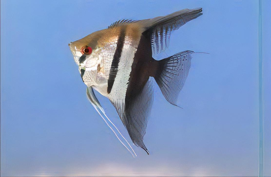The Angelfish (Pterophyllum scalare) is a longtime favourite of aquarists. This shoaling cichlid is relatively peaceful compared to other members of its family. It also has a very thin, tall body unlike most other cichlids. The Angelfish is indigenous to several river systems in Northern South America, but virtually all specimens in the aquarium hobby have been tank-raised for generations. This cultivation and selective breeding has resulted in an array of various attractive colour morphs.