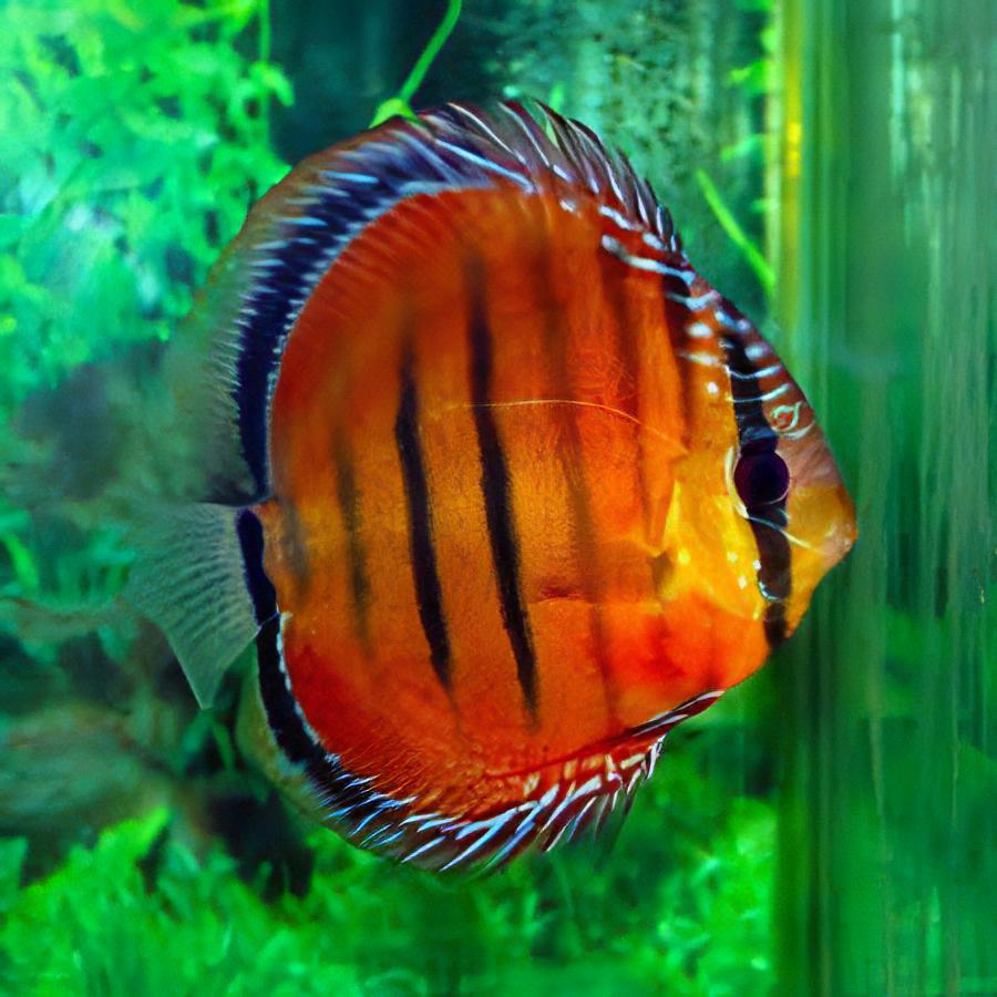 Overview: Discover the unparalleled beauty of the Heckel Discus, a regal freshwater fish renowned for its striking patterns and vibrant colors. Originating from the Amazon River basin, these magnificent creatures bring a touch of the exotic to your aquarium.