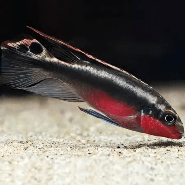 Overview: The Kribensis Pulcher Super Red is a stunning freshwater cichlid renowned for its vibrant colors and captivating behaviors. This fish features a striking blend of red and blue hues, making it a favorite among aquarium enthusiasts. They are known for their unique breeding behaviors and caring nature towards their young.