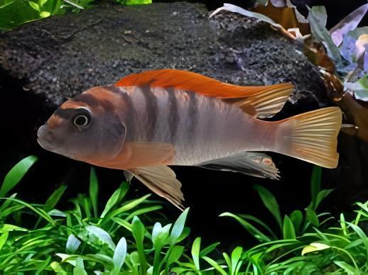 Feeding: A versatile omnivore, the Hongi Red Top enjoys a varied diet comprising high-quality cichlid pellets, supplemented with occasional treats like live or frozen foods such as brine shrimp or bloodworms.