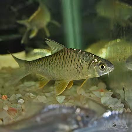 Overview: The Lemon Fin Diamond Shark, also known as Hypsibarbus Wetmorei, is an eye-catching freshwater fish characterized by its vibrant lemon-yellow fins and a sleek silver body. Originating from Southeast Asia, this species adds a stunning pop of color to any aquarium with its active and engaging nature.