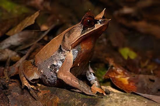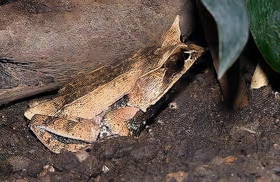 “Meet the captivating Long-Nosed Horned Frog, Megophrys nasuta, a unique amphibian originating from the lush rainforests of Southeast Asia. With its distinctively elongated snout and prominent ‘horns,’ this frog stands out in any collection.