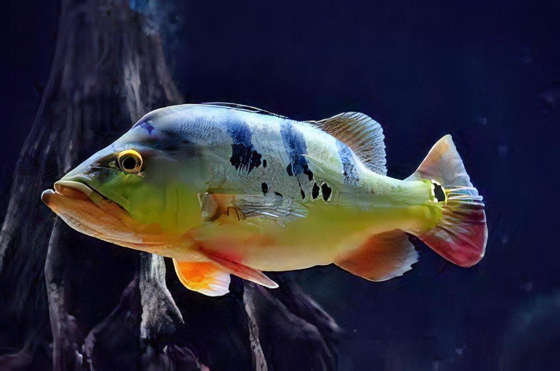 Diet: The Monoculus Peacock Bass is a Predator and live fish eater, so feeder fish will be required. They will also typically accept frozen foods and pellets once trained.