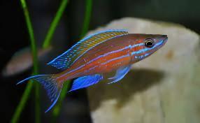 Origin: Hailing from the pristine waters of Lake Tanganyika in East Africa, the Neon Blue Cichlid is accustomed to rocky environments where it gracefully navigates through crevices and overhangs. This species thrives in the unique conditions of its African homeland.