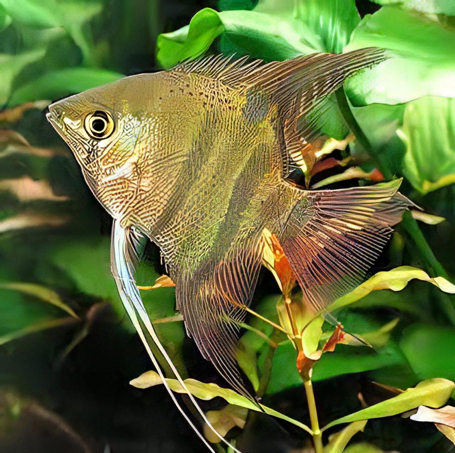 The Angelfish will thrive in a heavily planted aquarium with driftwood and/or rock formations and gentle water flow. It is not overly reclusive, but this fish strongly prefers the cover of plants and, due to its body shape, is not likely to seek refuge in rock caves and similar structures. The Angelfish is generally compatible with other peaceful fish as long as it has plenty of space. Territoriality is typically at its peak during spawning. Dwarf shrimp and other small, delicate invertebrates should not be kept with the Angelfish, but more durable, larger shrimp and snails could possibly make good tankmates in a large enough aquarium. If spawning is desired, tankmates of other species should be kept to a minimum or avoided altogether unless the aquarium is very spacious.