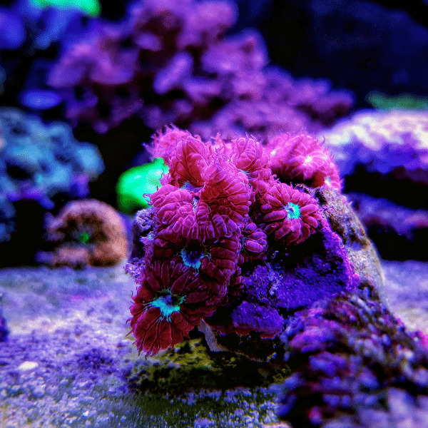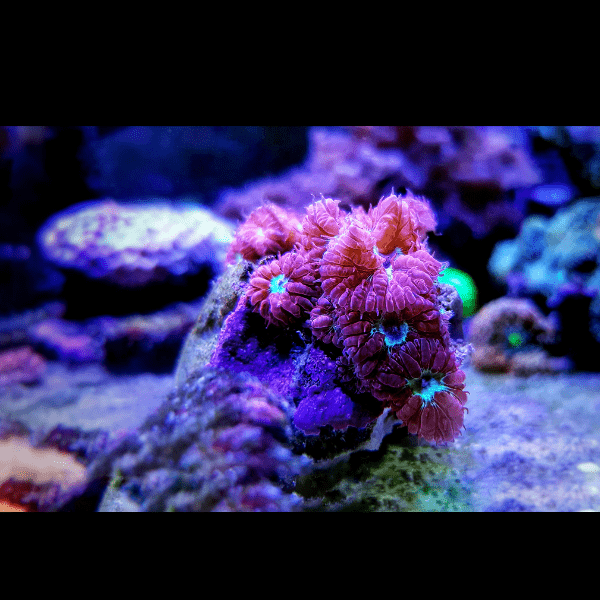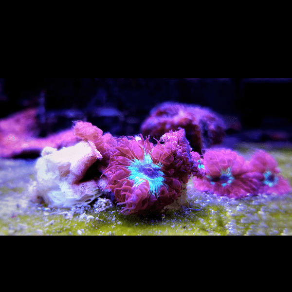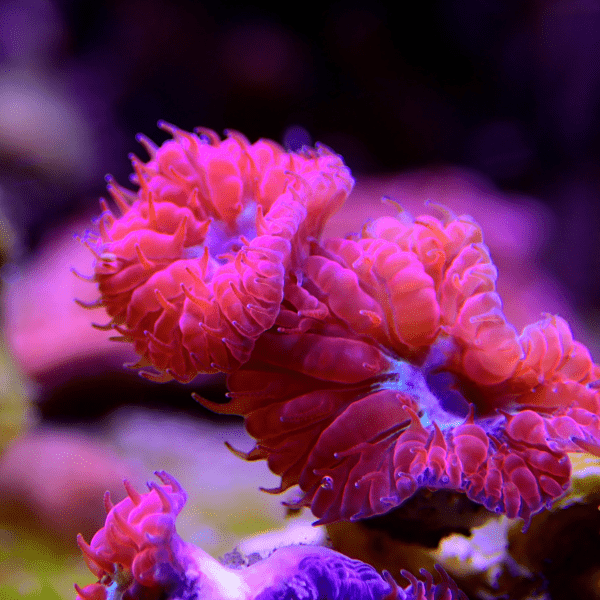 This coral prefers gentle water movement and can thrive under low to moderate lighting, making it ideal for mid-level placement in a reef tank. Regular feeding with coral food can promote healthy growth and enhance its vibrant coloration.
