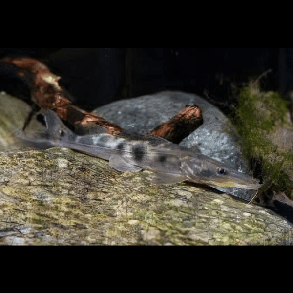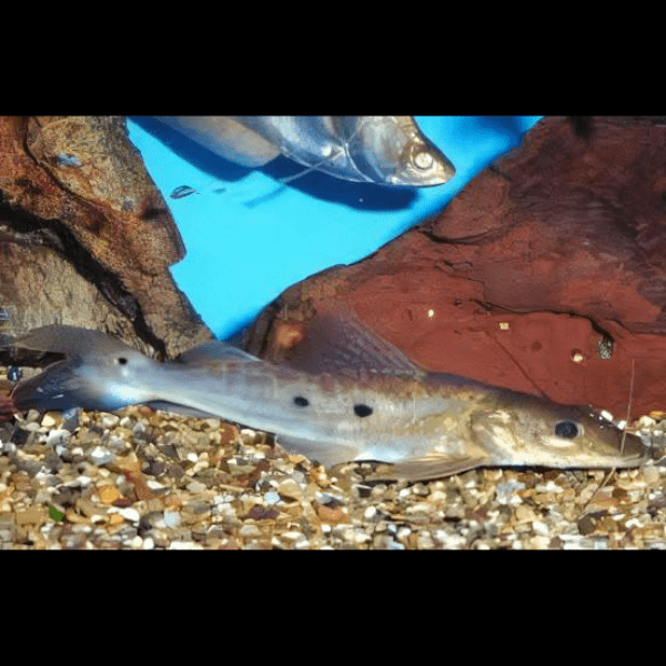 Overview: The Porthole Shovelnose Catfish, known for its sleek, elongated body and distinctive shovel-shaped snout, is a captivating addition to any large aquarium. These peaceful fish are nocturnal predators and exhibit unique hunting behavior, making them a fascinating species to observe.