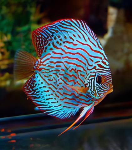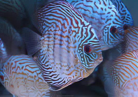 Discus are members of the Family Cichlidae and are sometimes referred to as “King of the Aquarium” because of their majestic beauty and regal colours. At least three species have been described, although debate continues over the validity of several assigned scientific names. Wild caught discus can be challenging to keep, due to their specialised water chemistry and dietary needs, however, most discus sold today are captive bred and are much easier to keep. That said, they are not for beginners for a variety of reasons. Through selective breeding, numerous colour varieties are available and more continue to be developed. For care and maintenance purposes, the information presented here can also be used for wild caught P. scalare and P. altum angelfish, as well as Uaru.