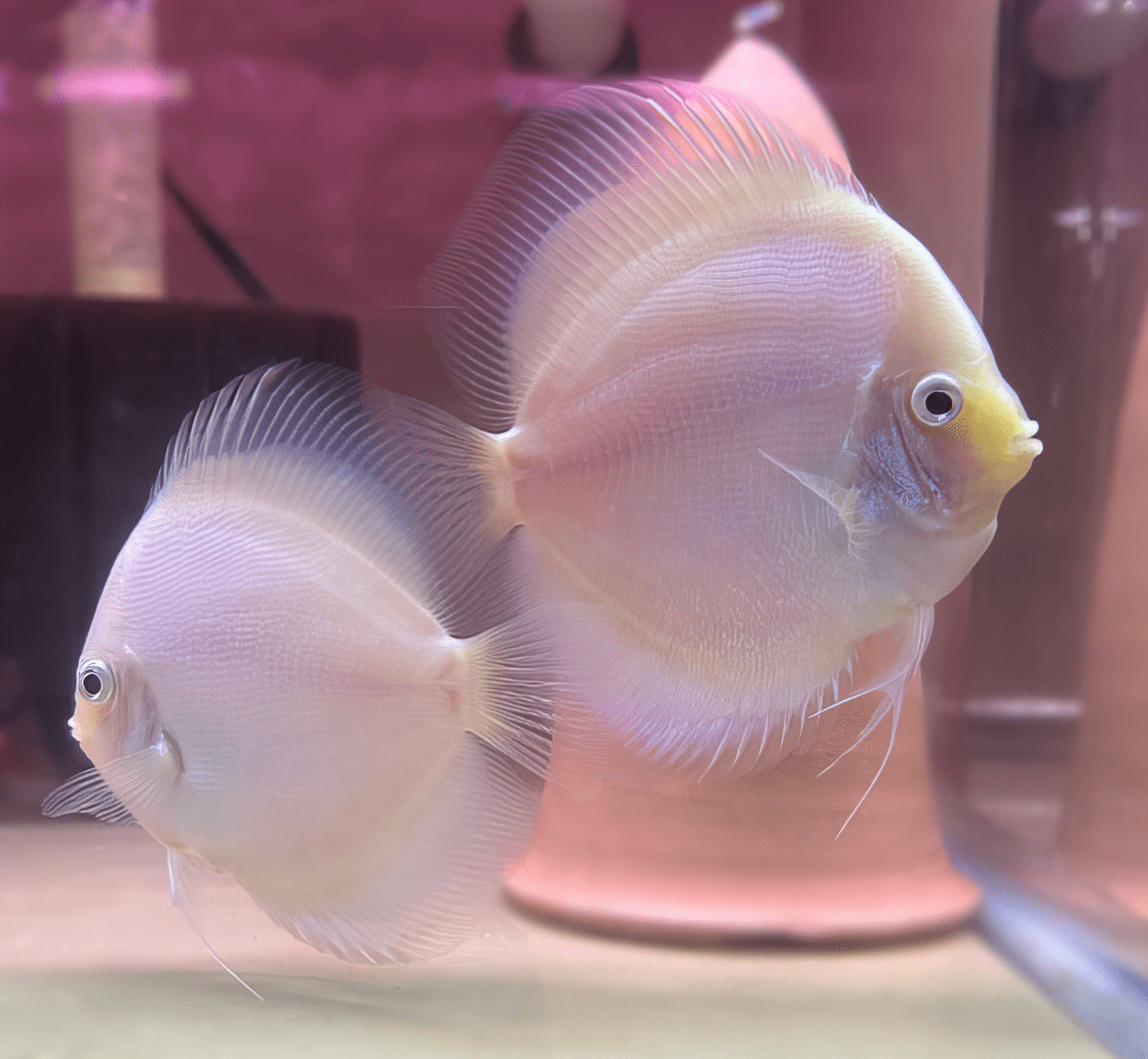 Discus are members of the Family Cichlidae and are sometimes referred to as “King of the Aquarium” because of their majestic beauty and regal colours. At least three species have been described, although debate continues over the validity of several assigned scientific names. Wild caught discus can be challenging to keep, due to their specialised water chemistry and dietary needs, however, most discus sold today are captive bred and are much easier to keep. That said, they are not for beginners for a variety of reasons. Through selective breeding, numerous colour varieties are available and more continue to be developed. For care and maintenance purposes, the information presented here can also be used for wild caught P. scalare and P. altum angelfish, as well as Uaru.