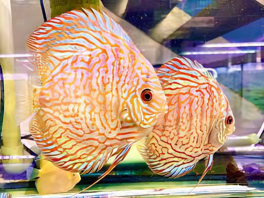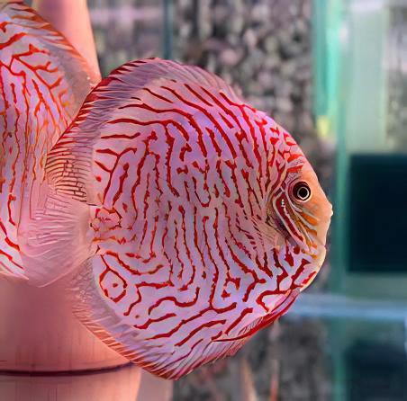 Discus are members of the Family Cichlidae and are sometimes referred to as “King of the Aquarium” because of their majestic beauty and regal colours. At least three species have been described, although debate continues over the validity of several assigned scientific names. Wild caught discus can be challenging to keep, due to their specialised water chemistry and dietary needs, however, most discus sold today are captive bred and are much easier to keep. That said, they are not for beginners for a variety of reasons. Through selective breeding, numerous colour varieties are available and more continue to be developed. For care and maintenance purposes, the information presented here can also be used for wild caught P. scalare and P. altum angelfish, as well as Uaru.