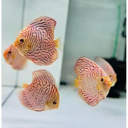 In nature, discus eat a considerable amount of plant material and detritus, but also forage along the bottom looking for worms and small crustaceans. They are omnivores and will thrive on Pellets and flake along side a treat of frozen and live foods. Some hobbyists and breeders feed their discus beef heart, and while it is not harmful, it is certainly not a natural food for discus. For best results, rotate their diet daily and feed only what they can consume in 2 to 3 minutes, once or twice a day.