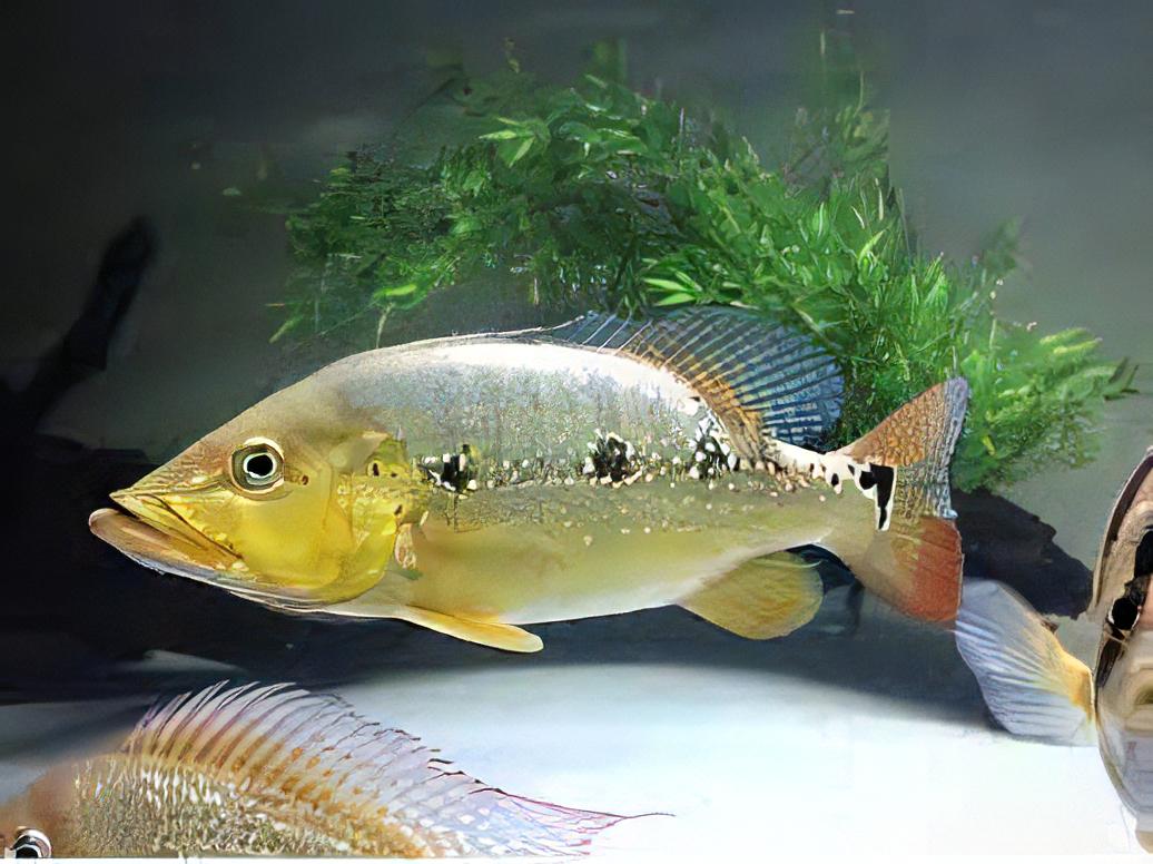 Once rare in the hobby, the Xingu Peacock Bass, as the name implies, originates from fast-flowing waters of the lower Rio Xingu in Brazil, where they are popular food and sport fish. They are now being bred commercially in both Asia and their native Brazil for the trade. Adult C. melaniae are a powerful, heavy-bodied fish which display a vivid, almost uniform yellow coloration with a small horizontal broken bar of black spotting. Like all peacock bass, Xingu require very large aquariums and should only be kept by experienced hobbyists. Xingu Peacock Bass are powerful predators, and will eat any fish that can fit in their large mouths. They are best kept in small groups with similarly sized cichlids although aggression and territoriality can become an issue as they reach maturity.